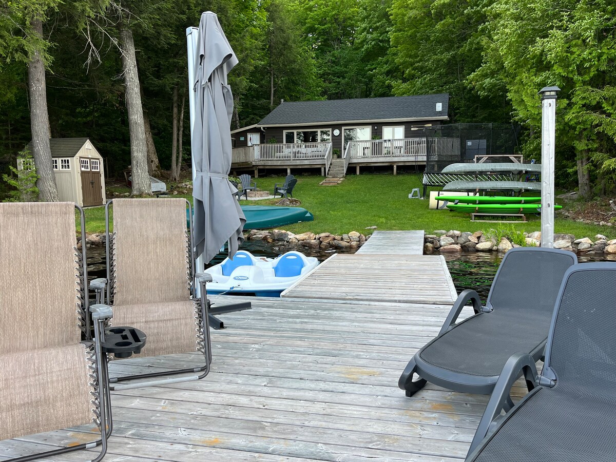 Enjoy panoramic views of Lower Buckhorn Lake with the family! Relax perched in the hot tub atop the rocks of the Canadian Shield, nestled among the tall pines. This newly updated waterfront cottage features 3 bedrooms & an open concept living space. Over 280 feet of waterfront for you to enjoy the sunrise & sunsets & fish off the dock! Get cozy on the couch, play games, or watch movies. Take a stroll around the island. Hi speed Wi-fi to work or play. 6 minutes to town, less than 2 hrs from GTA.