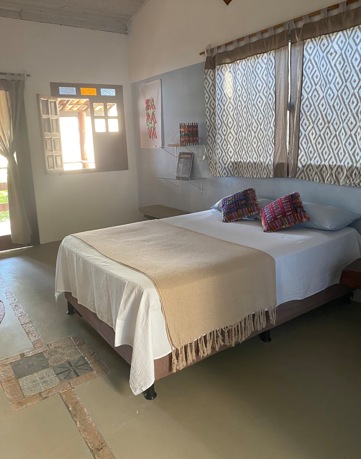 Maria Bonita é uma janela para novas direções, novos caminhos e conceitos. Um convite para revisar nossos valores e crenças. Possui um agradável jardim interno que ilumina os ambientes, a cozinha é bem equipada com quase tudo o que você precisa. O espaço conta com internet wi-fi fibra óptica 500MB. Em Boipeba tudo se faz a pé, o espaço fica na Pracinha da Matança a cerca de 5min da praça central ou 8min da praia Boca da Barra. 🪴🍀🌿