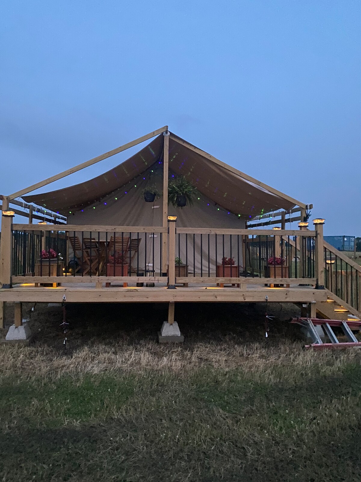 Wildflower yurts are one of a kind romantic getaway for two! You have all the comforts of home, like air conditioning, electricity, showers and toilets. Beautiful sunrise/sunset views of farm country and the Wildflower Wedding Venue property. Private shady spots in the trees perfect for reading a book in the hammock. We have three yurts on the property Honeysuckle, Primrose and the Bluebonnet. All three can be booked on Airbnb.