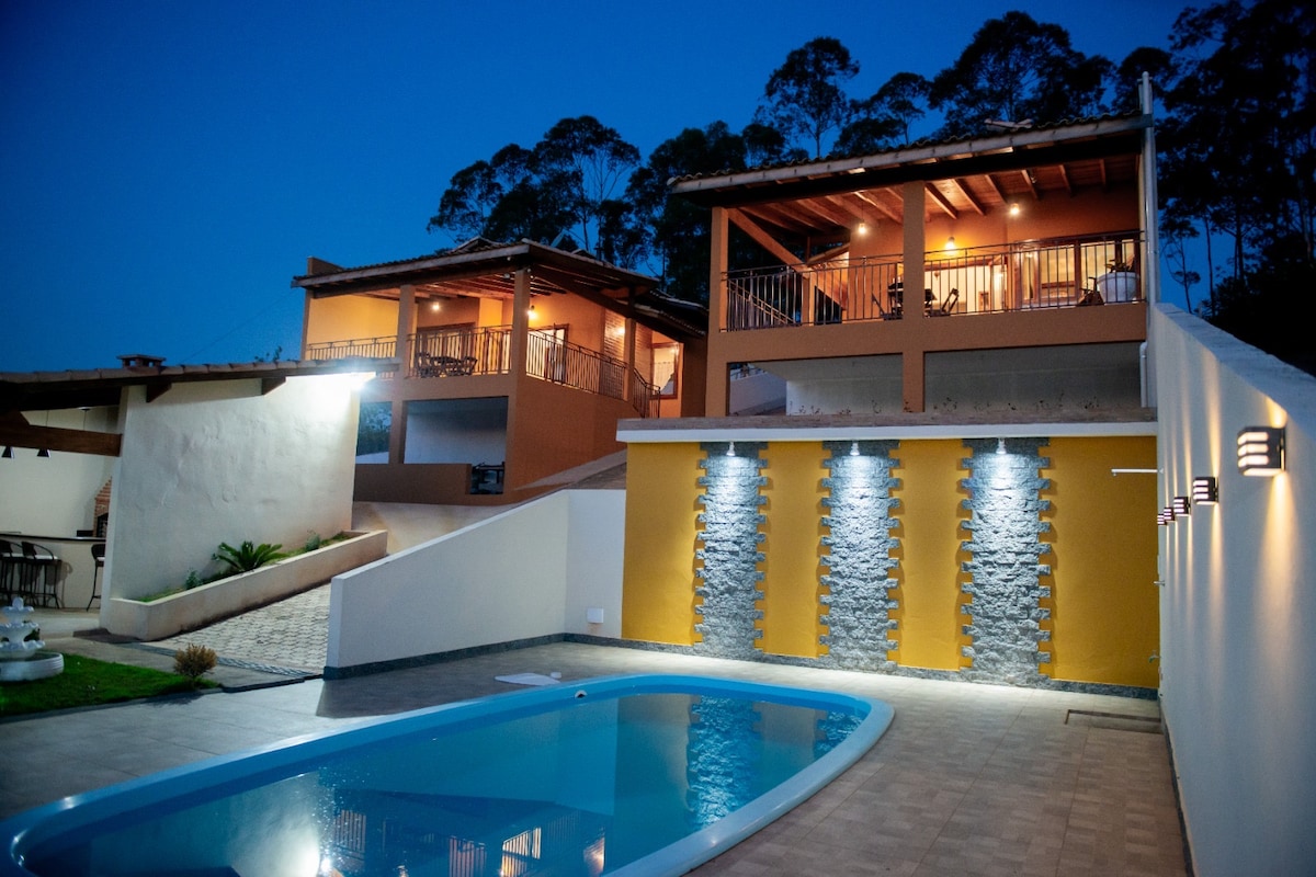 Welcome to our cozy home, 50 meters from Rua dos Ateliês and overlooking the Historic Center. A private pool with more than 80,000 liters, a panoramic view of the city, a large balcony with a barbecue area and a beautiful living room with a fireplace for cold days. Perfect location, neighborhood 500 meters from the Historic Center, surrounded by nature, charm and art. Come stay with us and enjoy every moment to relax and unwind! TV: Streaming (Netflix) and open (over 40 channels)