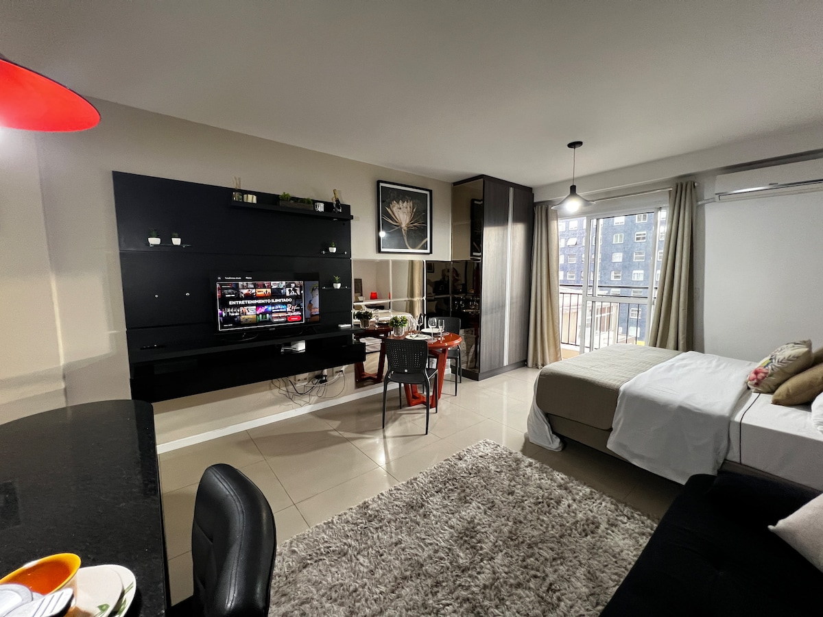 Very well decorated and super-equipped studio on a high floor. Ideal for professionals who come to Curitiba on business and couples who appreciate good taste, a beautiful view of the city and the convenience of being close to everything. The garage must be reserved and a daily payment of 25.00.