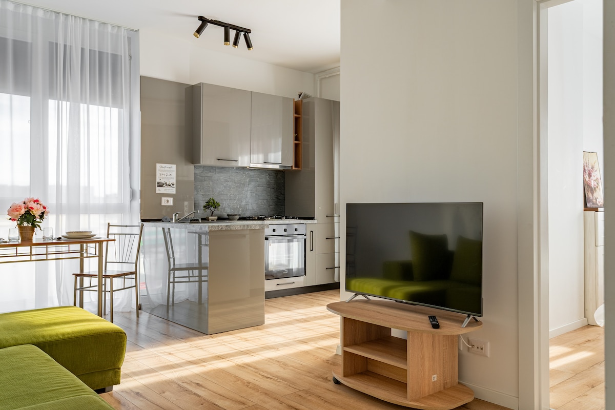 Enjoy the comfort of an elegant/modern apartment located in the city center, ideal for an urban getaway or a longer stay. With a modern design and full amenities, this space is the perfect choice for families, friends or business travelers. We offer: 2 comfortable bedrooms (double bed), spacious living room, 2 modern bathrooms (one with shower, the other with washing machine). Fully equipped kitchen (oven, stove, fridge, microwave, dishwasher), smart TV, Wi-Fi. 2nd floor. Central
