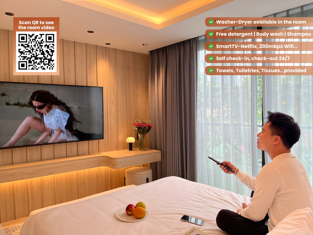 Welcome to Your Urban Oasis! Relax in our 1-bedroom apt for 2 with a wide-view balcony in Japan Town, just 5 minutes from HCM center. Restaurants, bars, cafes, massage spots, and convenience stores are all within a 1-200m walk. On 3rd floor, your Japandi paradise has full amenities. No elevator, but the wide and gentle stairs are a free workout! 💪 Enjoy a 100-inch projector for movie nights, a cozy 1.8m sofa, a fully-equipped kitchen, and a refreshing bathroom.