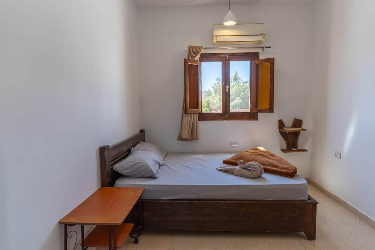 Two-bedroom house in Eel Garden, Dahab, just behind Coral Coast Hotel. Seconds from the beach, dive centers, markets, shops, cafés, and restaurants, yet quiet and private. The home offers two bedrooms with double beds, a fully equipped kitchen for daily cooking, and a comfortable living area with built-in seating. A private green garden with shaded seating adds a relaxed outdoor space. Ideal for guests looking for a central location, easy beach access, and a comfortable home base in Dahab.