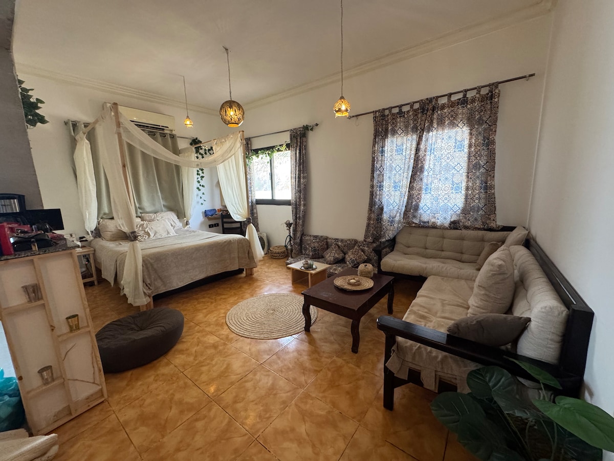 Relax and unwind in this cozy, fully furnished studio in the heart of Assala, Dahab. Enjoy amazing sea and mountain views right from your private balcony perfect for your morning coffee or a sunset wind-down. The studio features a comfy king-size bed, AC, smart TV, and a fully equipped kitchen with a stove, microwave, and all the essentials you need for a short stay or a longer escape. You're just a 2-minute walk to the sea and only 4 minutes from Assala Square