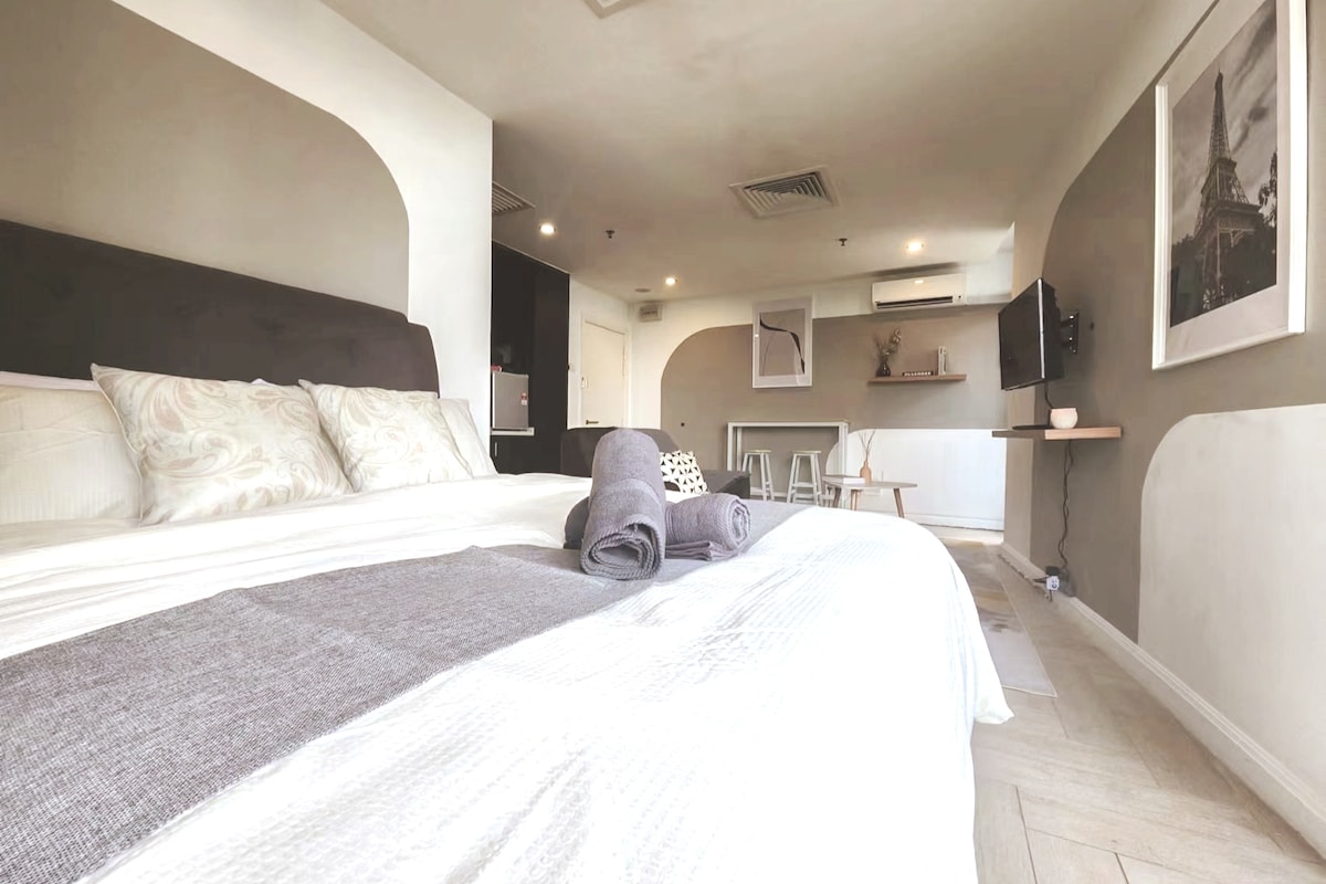 Stay in our premium studio apartment in the heart of Sri Hartamas. Enjoy easy access to Mont Kiara, Damansara, Bangsar, and Kuala Lumpur City. Our apartment features 5-star amenities and direct access to Hartamas Shopping Centre and Plaza Damas, offering a variety of local and international dining and shopping options. Disclaimer: This is a open layout studio unit, that has been partitioned with 1+1 bedroom, therefore the rooms do not have doors