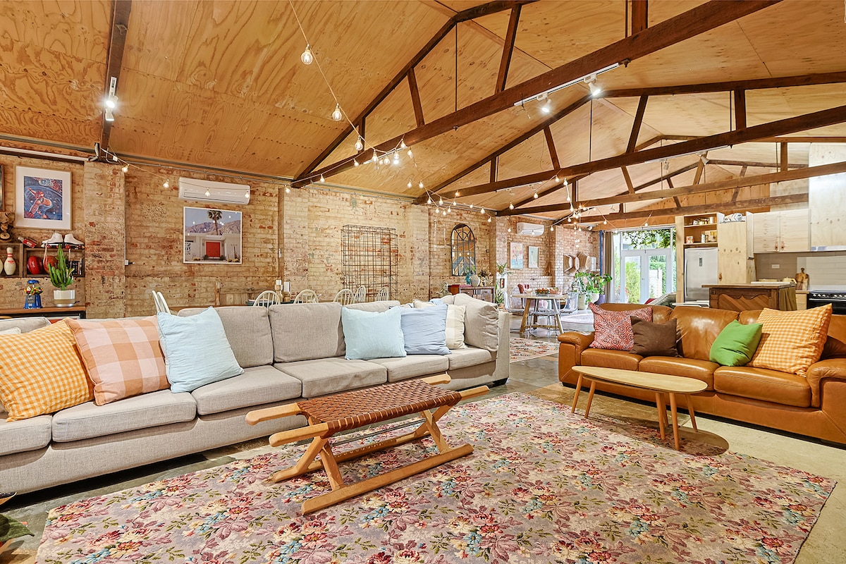 Located approximately 10 minutes from Mildura CBD, experience New York style Loft living nestled amongst Country Views. Once a mechanics workshop in the 1900's, this renovated unique space is for anyone looking for a super cool hang out while on a couples retreat, business journey or weekend away. Featuring open living kitchen, lounge room, dining areas and murphy bed as well as an enclosed bedroom and bathroom. With it's eclectic charm you are sure to have a memorable and relaxing stay.
