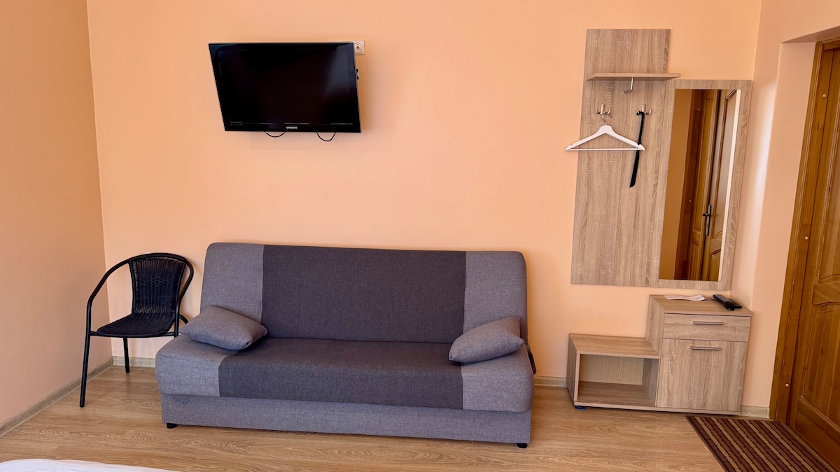 Cozy apartment/studio, for a business person or a couple with a child, the apartment is equipped with everything necessary for the relaxation and comfort of three people. All the necessary infrastructure is within walking distance.