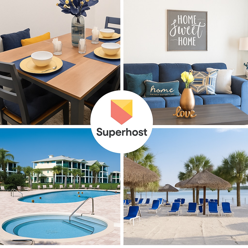* 15 MINUTES to WALT DISNEY WORLD and other Orlando attractions! * PRIME LOCATION next to the resort’s pool, restaurant, and lakeside beach! * SPLASH PARK for kids! * Over 1200 sq. ft of living space! * FULLY EQUIPPED kitchen! * Two screened balconies with WATER VIEWS! * WASHER & DRYER in the unit! * FREE PARKING in front of the building entrance! * GATED entrance with 24 hour SECURITY! * LINENS & BEACH TOWELS provided! * Starter supply of toiletries! * PACK 'N PLAY and HIGH CHAIR provided!
