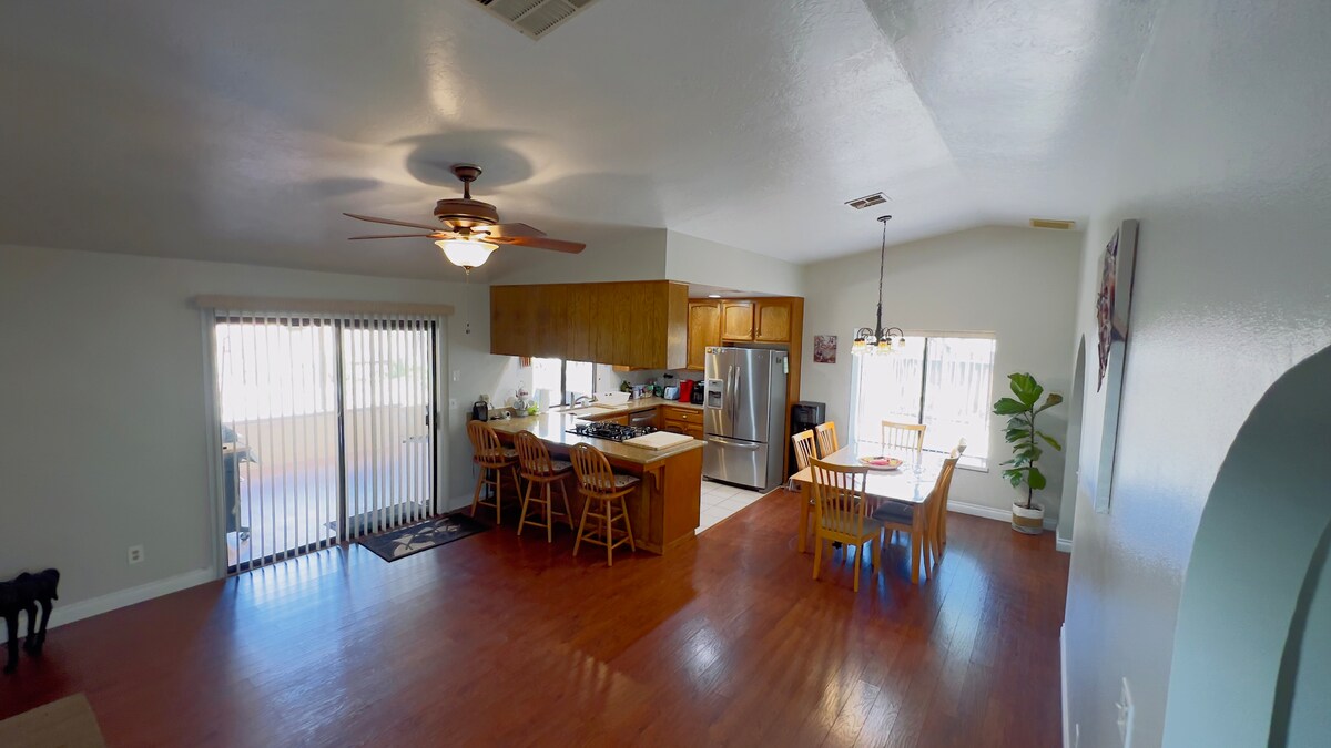 Wagon Wheel Ranch LODGE Featuring 3 bedrooms & 2 bathrooms, all on the same single level. In addition to a full kitchen & Southwestern decor to make your stay very memorable. There is a game room with Skee Ball, Air Hockey and 3 Arcade Game Consoles, Darts, and Wii console. Backyard has fire pit, built-in bbq and horseshoes available. Pool is seasonal and is fully fenced.