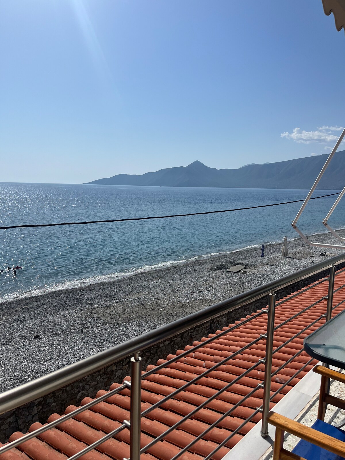 Wake up by the sound of waves! This beautiful and cute apartment right in front of the beach of Lakkos is the perfect location for sea and mountain lovers alike. The privileged veranda is a perfect place to enjoy your meals and have a drink while a sea breeze gently hits your face. The apartment contains a bedroom with a double bed and a living room with a small double bed that can be expanded with a bunk bed, a fully equipped kitchen, bathroom and all amenities you might need during your stay.