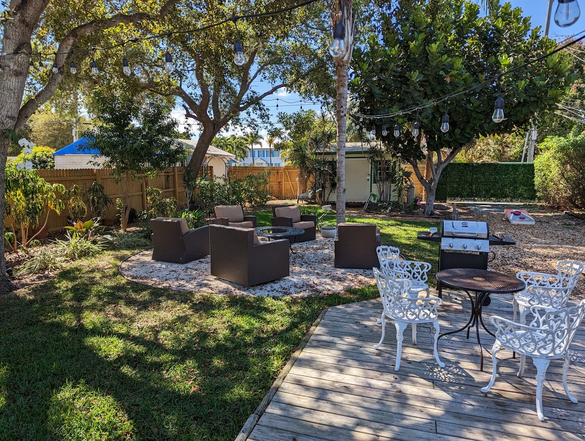 Situated in Lake Worth Beach, Garden Cottage with private entrance situated between palms and a giant Mango tree just one block from the intercostal and a 10 min, 1.4 mile walk to the beach The private backyard is where you'll spend most of your evenings. Lounge in outdoor seating with a bottle of wine and enjoy the relaxing sound of the breeze as it whistles through the palm trees in the garden.