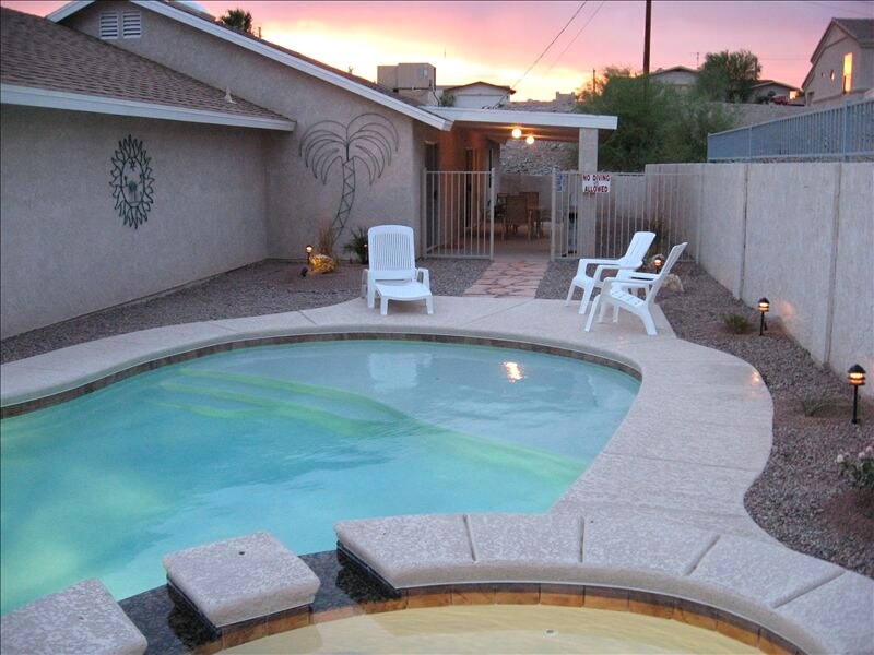 Your Lake Havasu getaway for families and groups. ☺ ★ Private pool (heated & chilled - addl cost), BBQ grill, and outdoor dining patio. 3BR • 2BA single level near the lake, restaurants, and boat ramps. Perfect for family vacations, group trips, or long weekends in the Arizona sun. +Central A/C and heat +Heated & chilled pool +BBQ grill & outdoor seating +Kitchenette with dishwasher +Washer + dryer +Driveway parking (trailers welcome) Prior notice required for pool to be heated