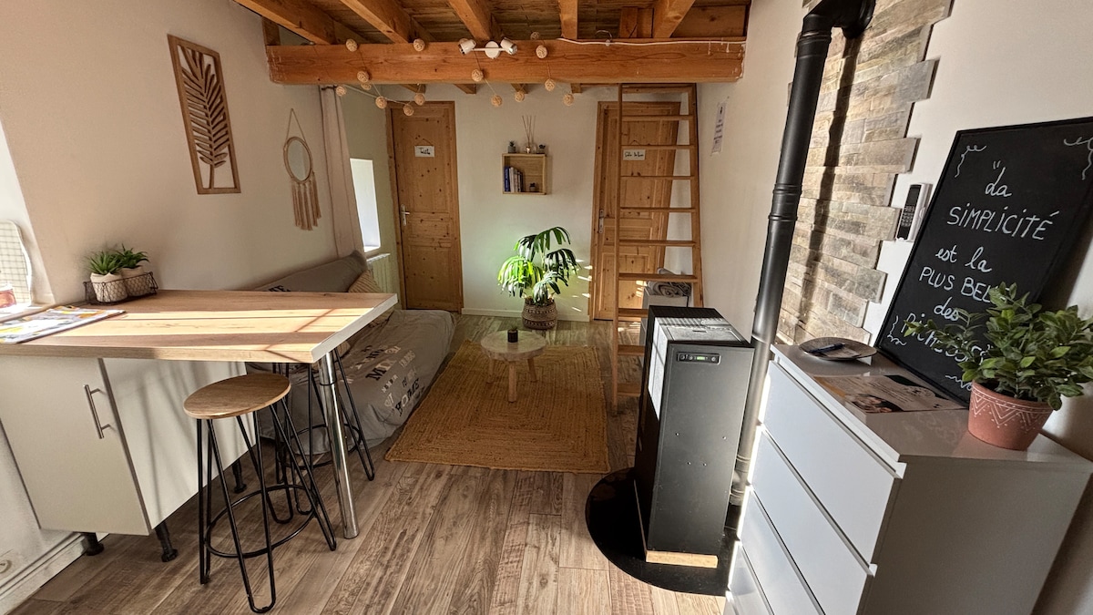 Come and discover this completely new accommodation, located on the ground floor of our chalet. With an area of approximately 38 m2, the apartment consists of an equipped kitchen, living room with sofa, bedroom and beautiful bathroom. Ideal for couples or groups of friends, you can enjoy our charming department from our chalet. The entrance to the accommodation is independent, directly overlooking the outside. Access to the pool is only possible from 10/07 to 5/08