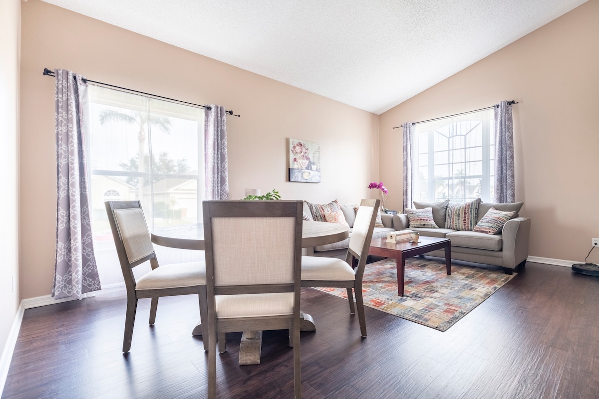 Welcome to our stylish oasis in Kissimmee, which seamlessly blends sophistication with a laid-back vibe. Your stay begins in a professionally cleaned apartment for your full enjoyment. Discover resort-style amenities – a sparkling pool, a fitness center, and hammocks, offering the luxuries of a five-star retreat. Conveniently located with in walking distance of theme parks, restaurants, and shopping. Book now. We can't wait to host you in our little slice of paradise!