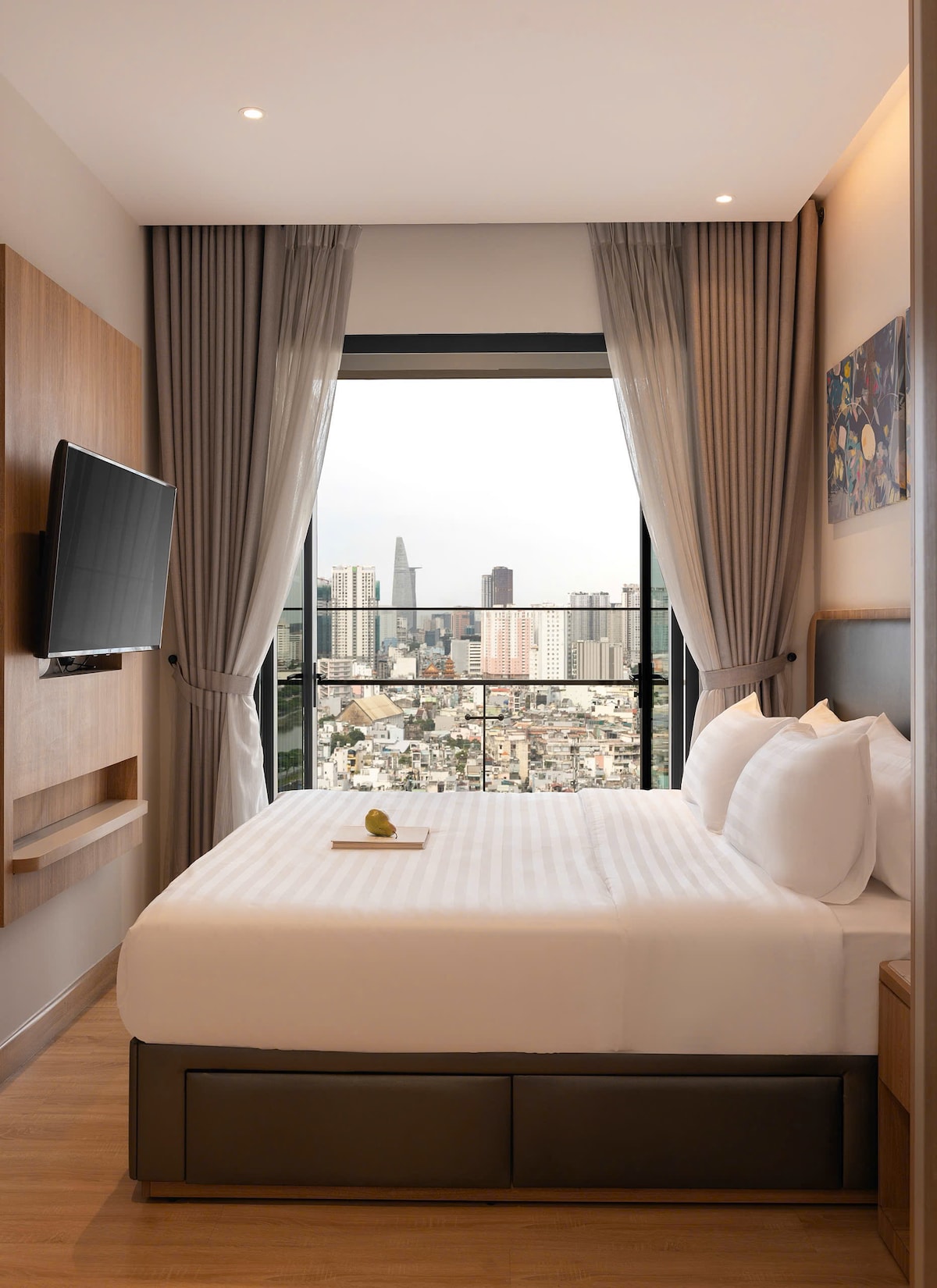Clouden — a minimalist urban retreat in the heart of Saigon’s District 1. This stylish studio offers skyline and garden views, a 100” 4K projector, full kitchen, laundry, and super-fast WiFi. Just steps from Bui Vien and Ben Thanh Market, it’s central yet peaceful. Enjoy a rooftop terrace, modern amenities, and keyless entry. Perfect for couples, solo travelers, and small families seeking comfort, convenience, and tranquility after exploring the city’s vibrant culture.
