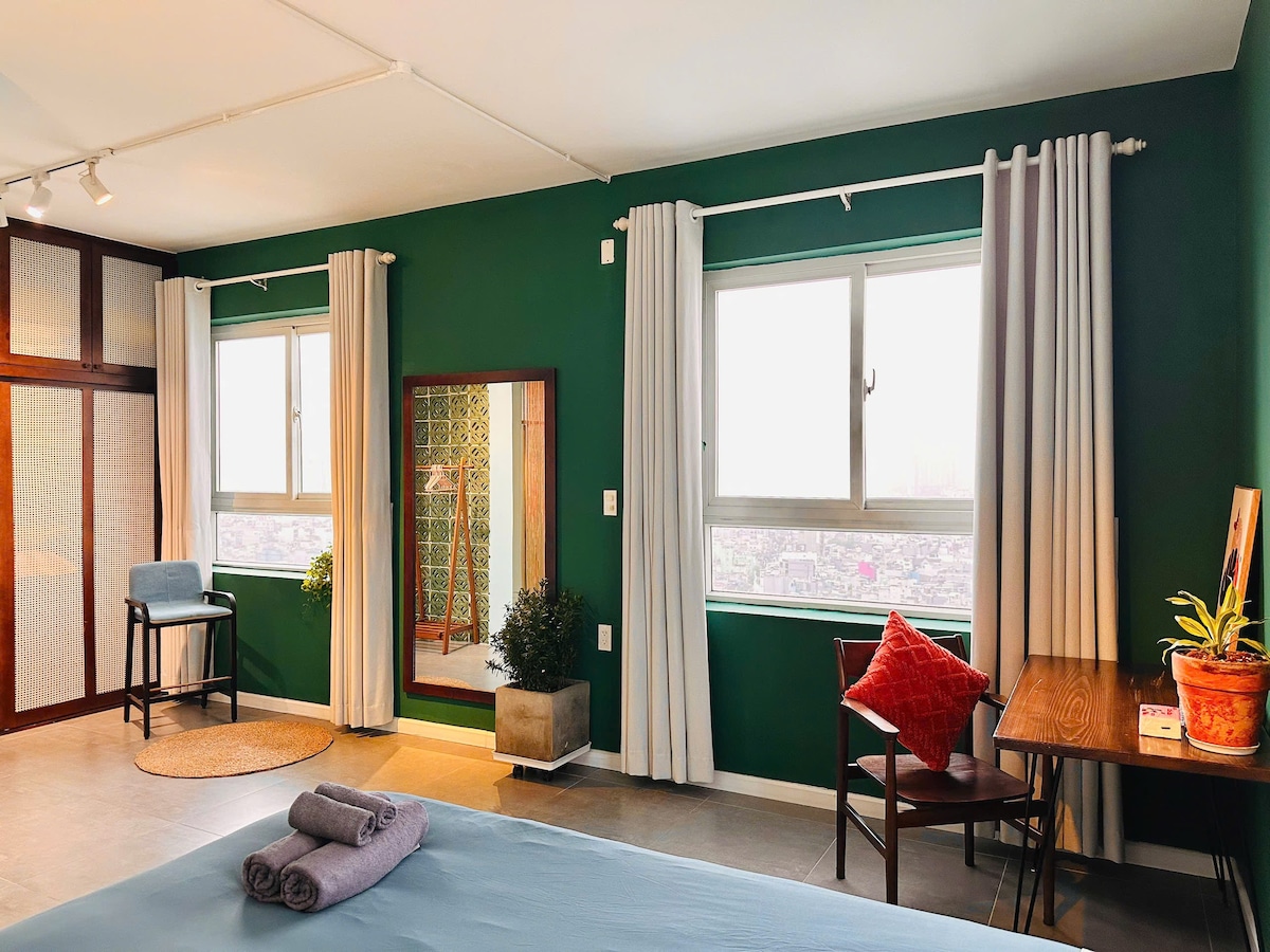 A beautifully designed studio apartment with everything you need, centrally located but hidden away just enough for a peaceful night of sleep away from the heavy city noise. Great for travelers who want to explore Saigon and are looking for quality comfort and a more local experience. - Beautiful swimming pool - Free fast wifi, Cable TV - Free amenities for your living: washer, dryer, AC, fridge, hot water - Kitchen with enough tools for your cooking. Note: Not provide/support VAT invoices
