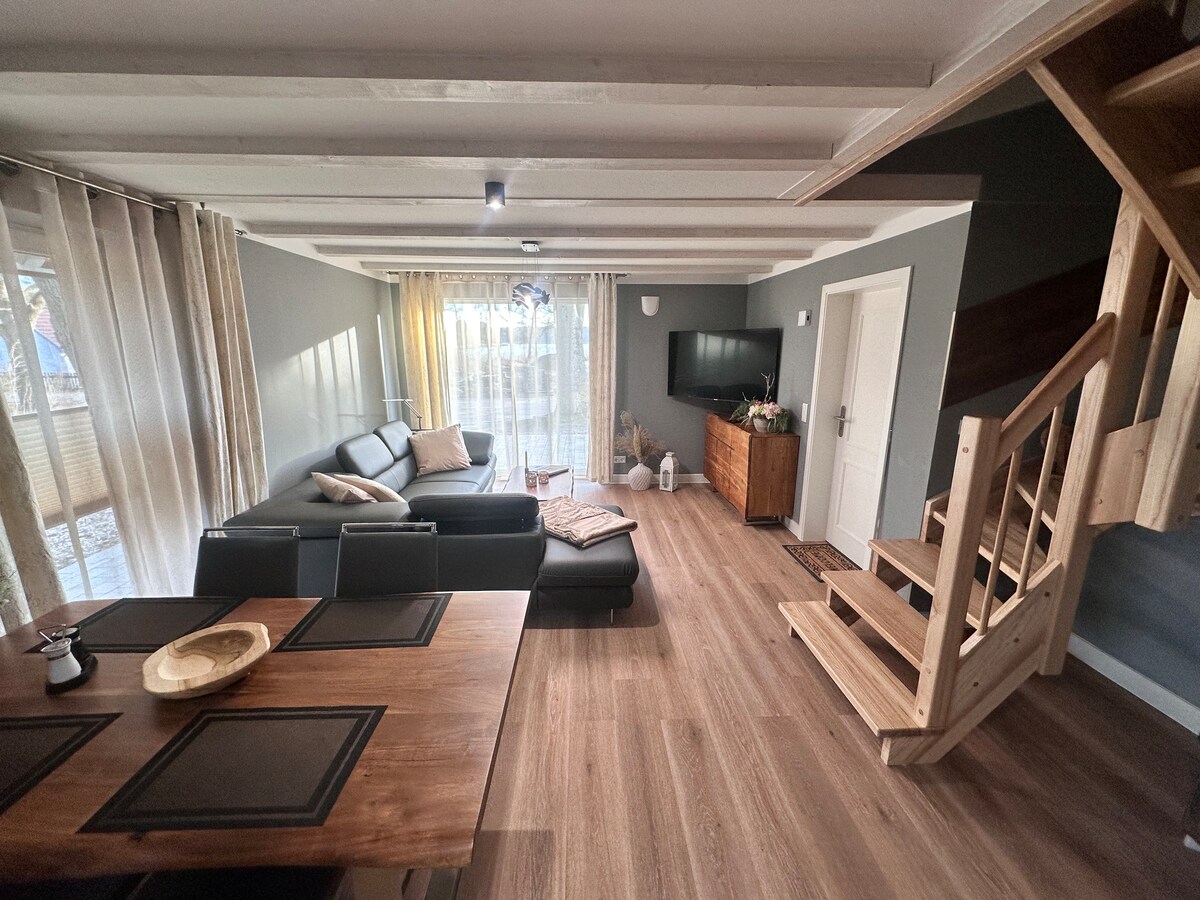 Let yourself be enchanted by the unique living feeling in our natural house with a cozy fireplace. For the optimal getaway or home office with a difference. :-) The interior was designed with a lot of love for detail on the theme of a hunter's room. Come in, feel good and just leave everyday life behind you..... Here you can combine work & well-being wonderfully. Or just relax and enjoy the time!