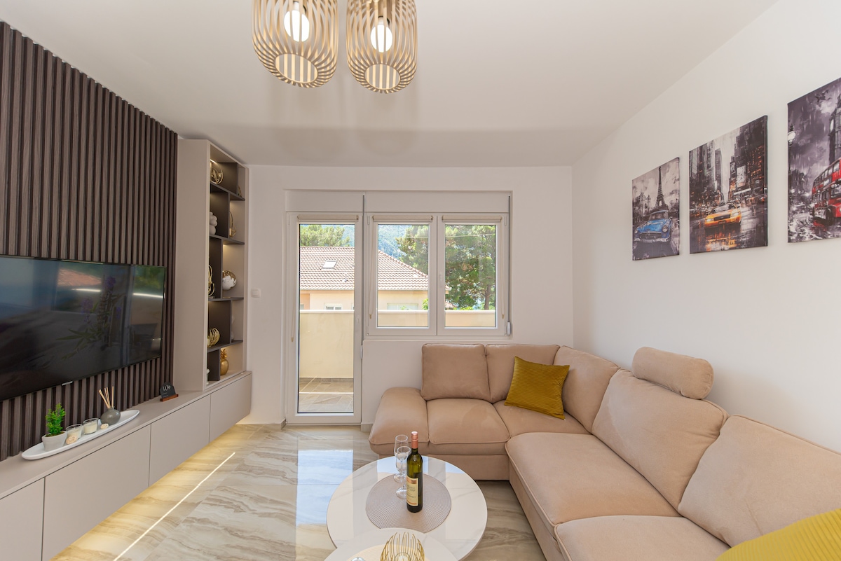 Built in 2025 (named after my first born daughter) one bedroom apartment 40m2 is located in quiet residential area of Kotor (Dobrota), just 3 km away from the Old town Kotor. The apartment consists of open plan living room, full kitchen and dining area, attached to the terrace offering unforgettable view over the Bay of Kotor. Mountain and see view. AC in every room, Wi-Fi, free private parking. Baby cot and high chair is available upon request. Kick back and relax in this calm, stylish space.