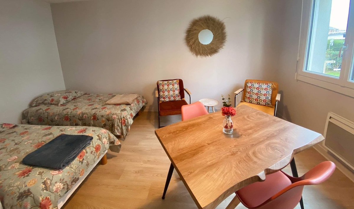 22 m² studio full of charm with a beautiful high ceiling completely refurbished, in a quiet and green area not overlooked. Located close to the village of Châtillon-sur-Colmont between Mayenne and Ernée. This accommodation offers: a separate entrance with cupboard, a fitted and equipped kitchen open to the bedroom with a 160 x 200 bed, private bathroom + toilet. Guests can also enjoy access to the garden of about 2000 m² with a seating area.