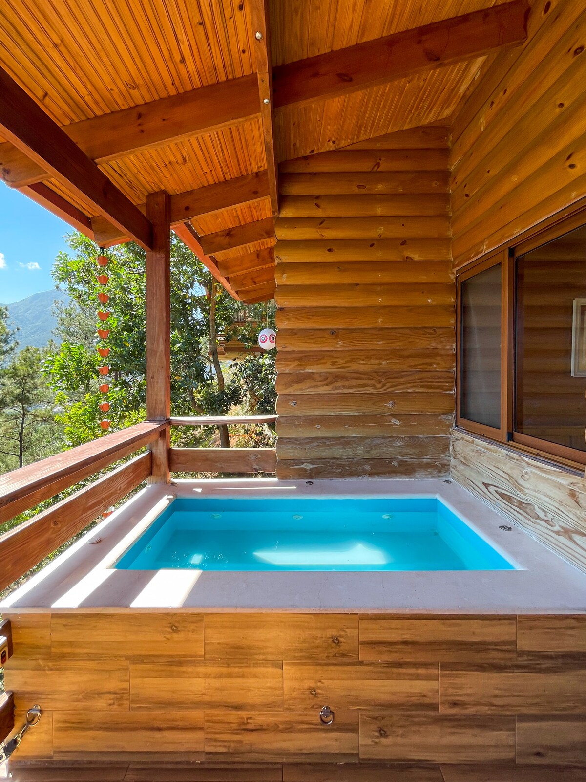 How many times have you imagined leaving the city and getting lost in a Chalet in the mountains? Welcome to our Chalet located in Jarabacoa! This is a lovely 2 bedrooms apartment decorated in mountain chalet style, which sleeps up to 4 people. There are two double bedrooms, each one with 2 bathrooms in total. There is a fully equipped kitchen and you can relax in the living room with the fireplace or just enjoy the jacuzzi with a stunning view!