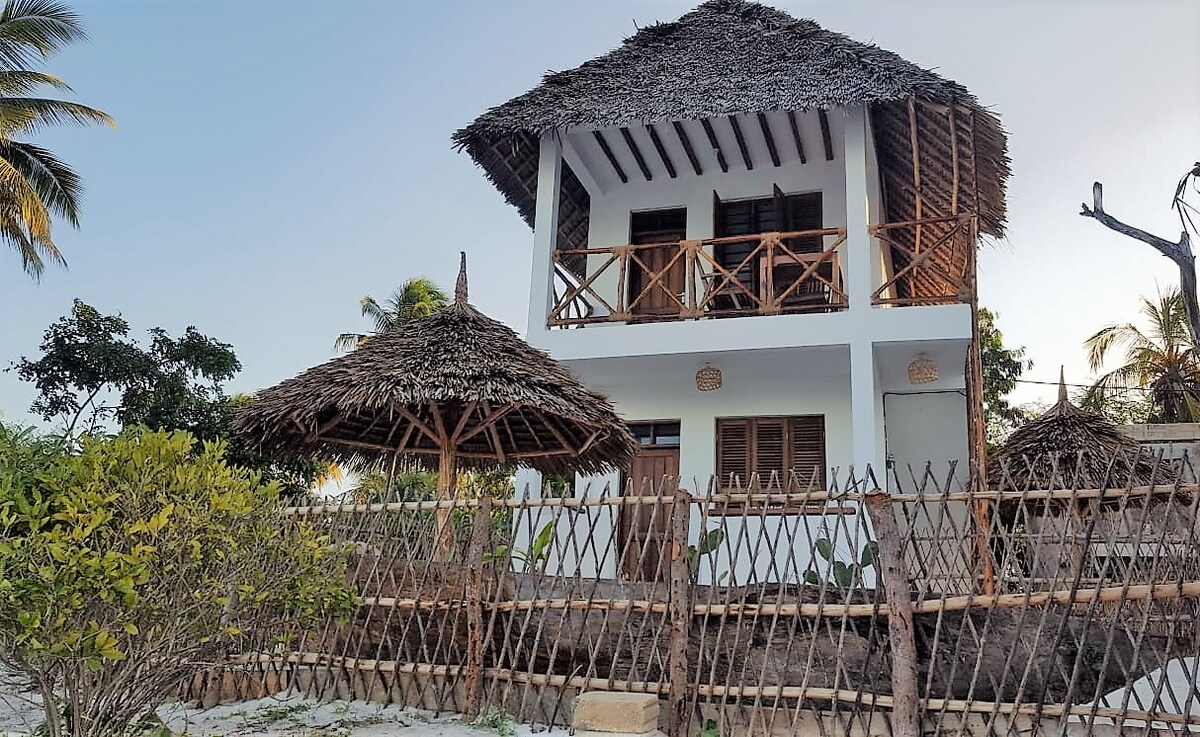 Bright A/C apartment just 100m from the beach. Fully equipped kitchenette, fast Wi-Fi, quiet area, homemade meals and transfers on request. A bright and cozy upstairs apartment perfect for couples. It features A/C, fast Wi-Fi, a private bathroom and a fully equipped kitchenette — ideal for an independent stay. Relax in a cool, peaceful space in a quiet and safe part of Jambiani, surrounded by nature and warm local hospitality.