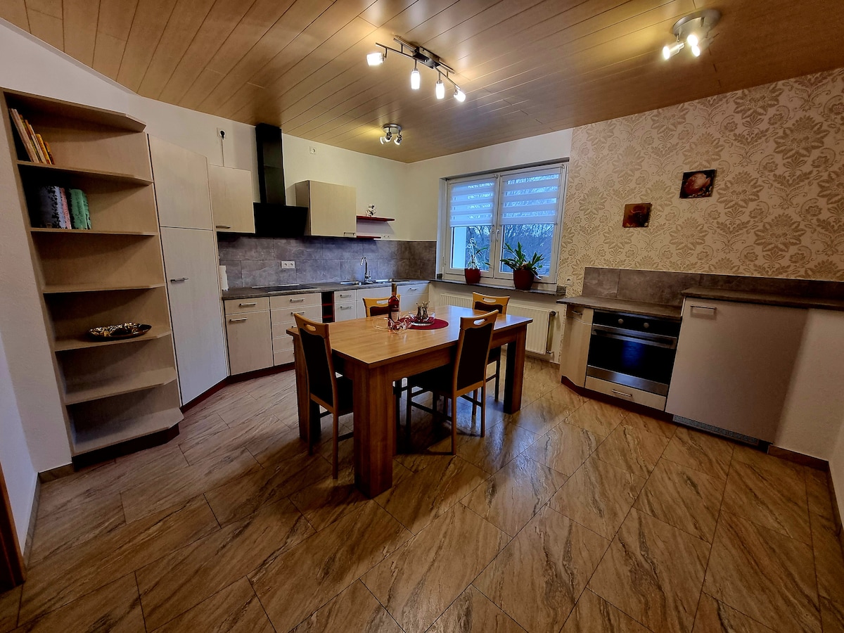 Vergiss deine Sorgen in dieser geräumigen u. ruhigen Unterkunft. In dem 2015 komplett modernisiertem und ständig verschöntem Haus mit 152 qm haben bis zu 8 Personen plus 2 Baby ausreichend Platz , das Haus ist mit Fussbodenheizung, hochwertiger Küche, Waschkeller, Waschmaschine, Trockner, 2 Bäder , 1x Dusche und 1x Dusche u. Wanne. 3 Schlafz. je 1 TV .WLan. . Großer Wohn Essbereich offener Küche, Wohnbereich mit Kamin. Ein schöner Garten, dichter Sichtschutzbepflanzung, überdachte Terrasse.