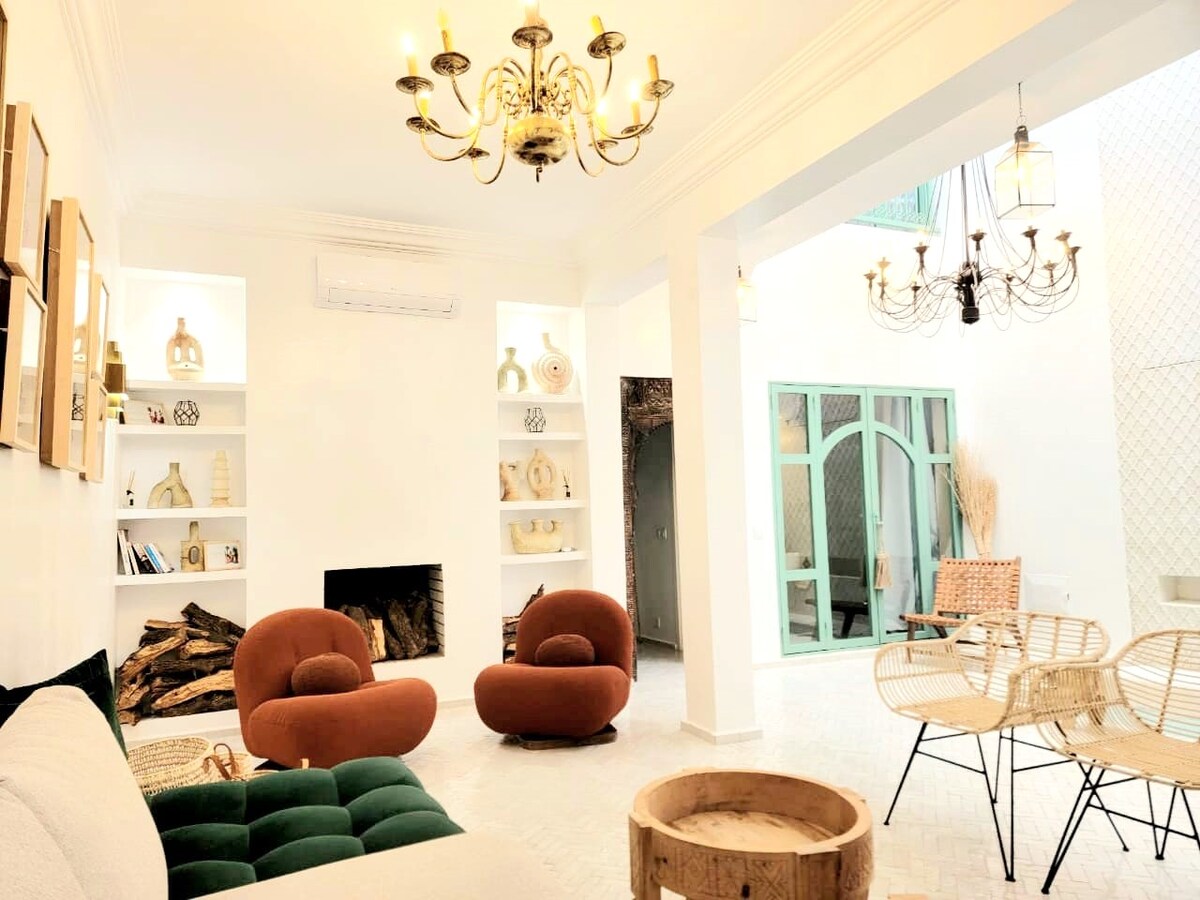 🌿 Private, bright and spacious riad in the heart of the medina. 5 bedrooms with private bathrooms, patio pool, large terrace and pétanque court. Included: Daily housekeeper Night watchman 24/7 butler for excursions, transfers, arrivals/departures Fast Wi-Fi, air conditioning, equipped kitchen, comfortable living rooms. 10 min from Jemaa el-Fna. Ideal for families, friends or retreats.