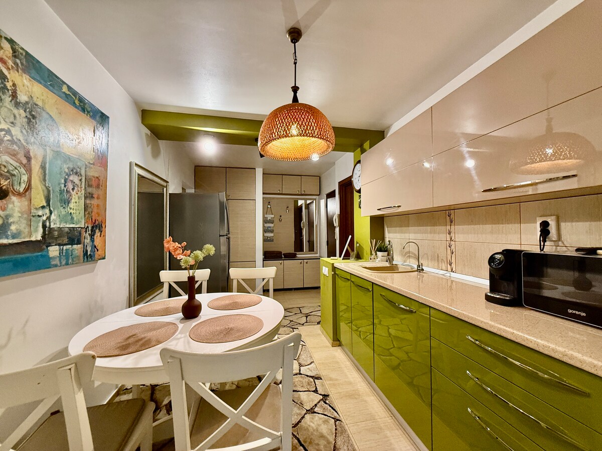 Bucură-te de o experiență stilată în această locuință administrată de o gazdă primitoare, proprietate personală, situată central, foarte spațioasă, foarte curată, mobilată și utilată cu tot ce e necesar!