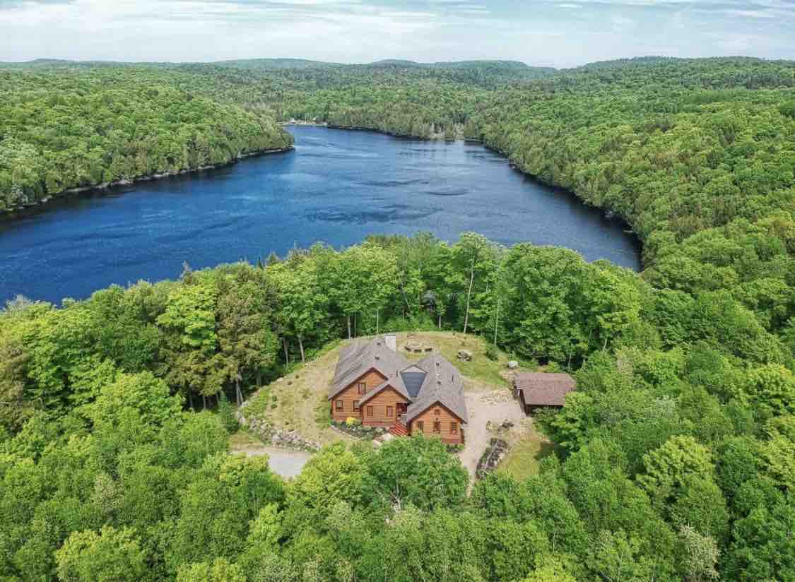 Perfect nature retreat in the heart of the Laurentian. Discover this unique Canadian log home built by local prestige company Harkins. Peaceful clear water lake directly in front of this hidden gem. ♦ Indoor wood fireplace next to comfy living room & smart TV ♦ Two Spacious Bedrooms with King & Queen bed ♦ Private Natural Lake Access ♦ Balcony with BBQ. Fire Pit ♦ Pure intimacy, no neighbours close ♦ Work desk and Wi-Fi