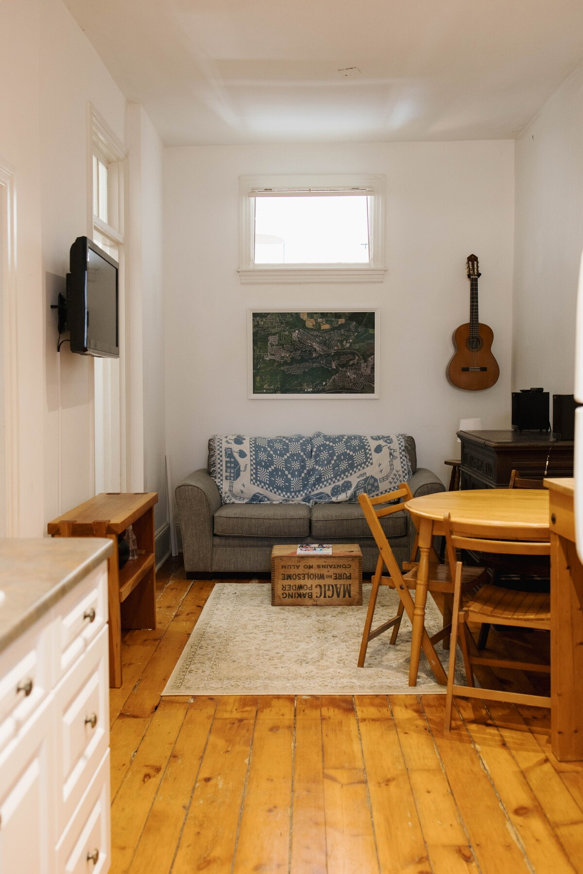 This cozy and quiet ground-level suite is fully private and is a quick walk to the restaurants, coffee shops and hiking trails in charming Dundas. Newly renovated bathroom, kitchenette with one driveway parking spot and free street parking. Five minute drive to McMaster University and hospital, close to the Ancaster Mill, Royal Botanical Gardens, and cycling trails.