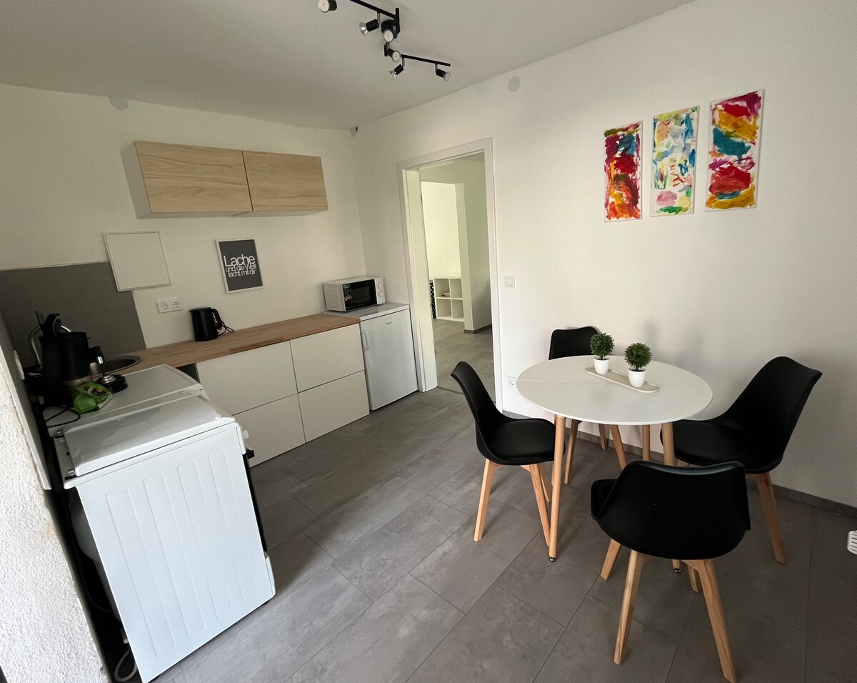 For short breaks (cyclists/boaters) who want to stay one or two nights at short notice. Simple equipment, single kitchen, shower and toilet on the first floor, upstairs bedroom with double bed. A roll mattress can be used for children. No TV, no closet. Located one street from the Lahn. Keep it simple at this peaceful and centrally-located place.