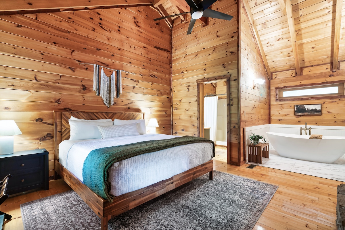 Enchanted Sunset is your ultimate romantic destination. This intimate cabin offers everything you need for an amazing getaway. You and your sweetheart can relax in the hot tub, or listen to the morning birdsong as you enjoy breakfast with outdoor seating. Located in a lovely wooded area, you can relax while watching the sunset from your private deck. Inside your cozy cabin, you will find leisure and luxury at its best, while still being within comfortable reach of all the local attractions.