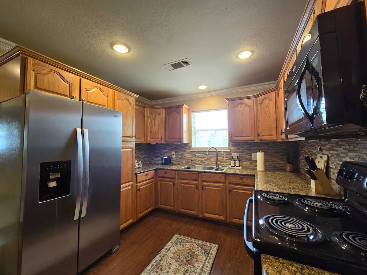 A cozy home away from home. Clean and modern with a native inspiration. Equiped with a fully stocked kitchen, washer and driver, wifi, dedicated movie and gaming room, family games and outdoor firebowl. Home is 2.4 miles from the Choctaw casino and event center. Visit the Choctaw Culture Center(dedicated to exploring, preserving, and showcasing the culture and history of the Choctaw people) .**UPDATE** No crypto mining of any kind allowed using more than normal electricity **