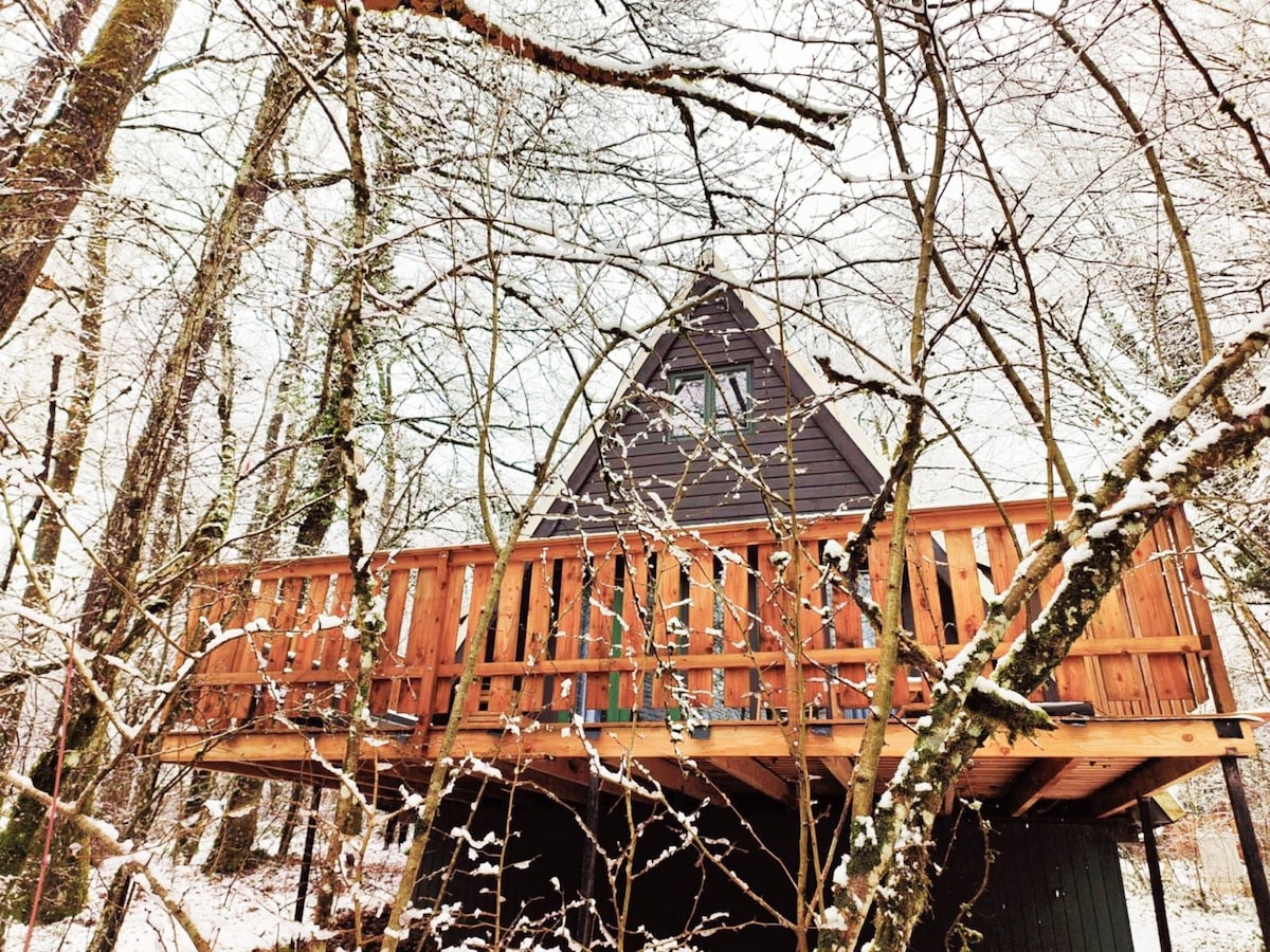 Our beautiful treehouse has been built with the utmost respect for the surrounding nature, overlooking a beautiful pond and with a large private outdoor space. Built with beautiful materials, the exterior was made with old pine boards from very old dismantled chalets in the Pyrenees. The roof is made of cedar shingles that give a very natural look by blending perfectly with this beautiful nature. Our lovely cabin sleeps two people You will spend the night in a large, very welcoming and ultra comfortable 160 cm bed. When you arrive the bed is already made, sheets, duvet, blankets and pillows are present. A dry toilet of course, a small sink provides you with drinking water at room temperature. Towels are at your disposal. In winter, you can enjoy a pleasant and gentle warmth thanks to the small wood-burning stove that crackles at the foot of the bed. Everything is on site, the small kindling wood, the logs, the firelighters, the matches... Electricity is supplied by solar panels installed on the property for lighting and charging mobile phones. In the small fridge, drinks are available at no extra cost. In the morning around 8 a.m., a delicious breakfast is served on the terrace. We come discreetly so as not to wake you, but don't take too long to take possession of it because the squirrels are there and they shouldn't leave with the pastries ;-) During the summer period you can enjoy the beautiful terrace overlooking the pond where ducks, herons, aquatic turtles and other water birds mingle and have your breakfast among this beautiful nature. If you want to enjoy the nocturnal animal life, it is recommended to leave the curtain open to admire many small animals coming to feed in the small feeder on the window 50 cm from you, the squirrels come from sunrise and the birds throughout the day. A list of some restaurants in the village is available if you want to eat in the evening as well as photos with the names of the small animals often encountered in the woods. In short, everything is done to make you have a great experience and a sweet night in the heart of nature.