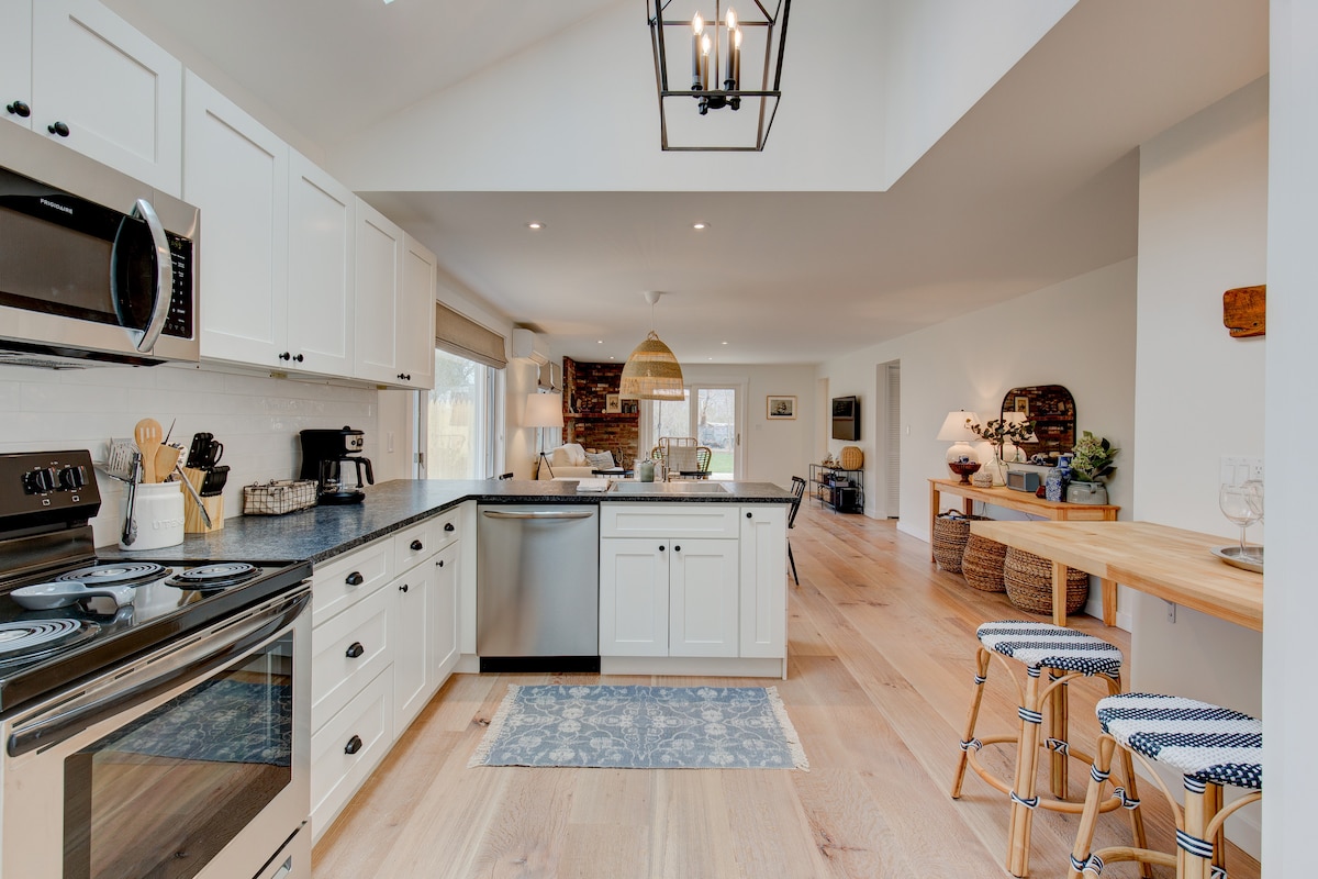 The perfect retreat for your escape to Martha's Vineyard, walking distance to downtown Edgartown! Location, location, location! We're a stone's throw from Edgartown Golf Club and all the amazing restaurants + shops are just a 10 minute stroll. This 2-bedroom, 2-bathroom home has been completely renovated, with an all-new kitchen, bathrooms, furnishings, linens & accessories. The house accommodates 5 people very comfortably, and is located on a quiet residential street just off Upper Main.
