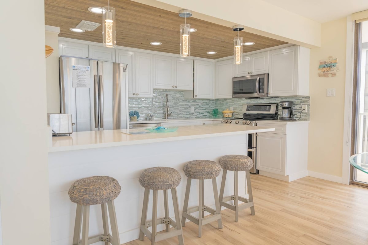 Welcome to 'Feeling Beachy,' a delightful 3 bedroom condo with a wrap-around balcony at Edgewater Beach Resort! Enjoy panoramic views in the kitchen, living area, master bedroom, and second room. This condo is well maintained, and the entire space is adorned with stylish decor. The bathrooms 3 total, are newly remodeled tiled showers, and the condo is furnished with brand-new, elegant furniture. - This unit is located in the Windward tower.