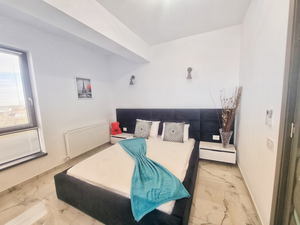 Bring the whole family to this wonderful place with plenty of space for fun. The luxurious, beautiful, elegant, intimate and chic studio, overlooking the sea, has an area of 37 sqm, maximum capacity of 4 people, located on one of the upper floors of a building built in 2021, in Eforie Nord. The building is equipped with 2 state-of-the-art elevators and video surveillance. The location is only 5 minutes walk from Acapulco beach.