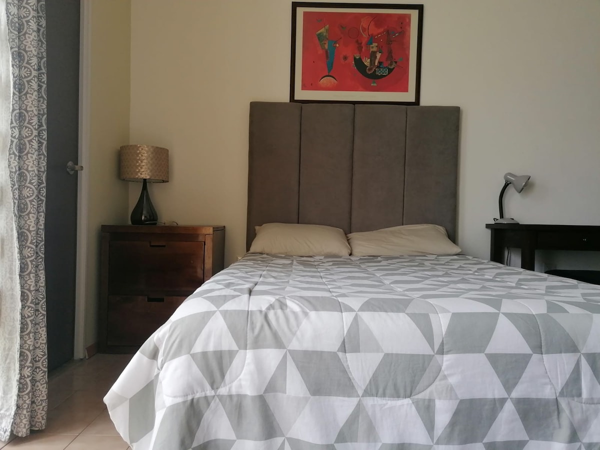 A place on the shores of Queretaro. But at the same time central and close to shopping centers with wide and nearby communication routes, the freeway leads you to the exit to CDMX or towards the bay and towards the center of Queretaro you do not find traffic lights, the apartment is on the same property where we live but it is totally independent since it faces the street and you can access your car through its own entrance you can leave it in front of the apartment so you are aware of it.