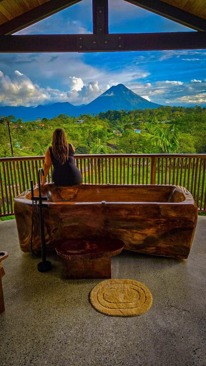 This beautiful, cozy Villa with an amazing arenal volcano view is located just outside of La Fortuna, a couple blocks away from downtown. For your comfort the house features: fully equipped kitchen & living room, couch, high speed Wi-Fi, 2 bedroom with a king size bed, A/C, one T.V at the living room area & cable and Bluetooth speakers, as well as washer and dryer. Full bathroom with toiletries. The back yard features a stone hot tub, infinity pool, swim up bar, sun deck and outdoor showers.