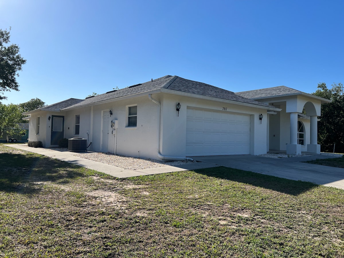 Beautiful beach home located in the only neighborhood in Ellenton with a public boat ramp. Walking distance to boat dock, minutes from Premium Outlets and the Sarasota Mall, beaches and so much more. Fenced in backyard beautifully manicured. Screened in back patio with dinner table, couches and TV. 3 bedrooms and 2 full bathrooms with large open family room space. 2 couches, 1 blow up mattresses and Pack and Play available. Enjoy a private Florida paradise.