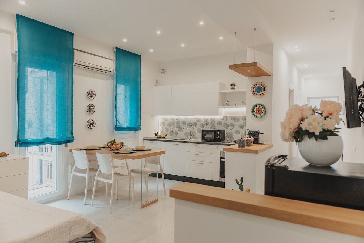 Vetriera41 has bright apartments, about 25m ² recently renovated and set up in industrial style. Thoughtfully chosen materials range from wood to iron and stone, creating aharmony of a context typical of style. Each apartment has a double bedroom, small kitchenette and bathroom. The designer furnishings create a unique and stylish environment that allows theguest to live a special stay experience.