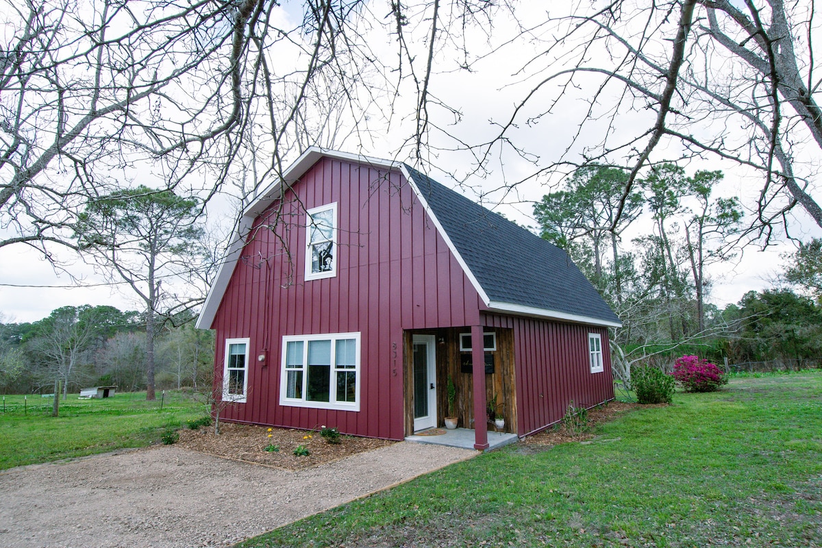 Experience country charm in addition to convenient location- just 1.1 mile off interstate 10! Grocery stores and your favorite restaurants are also close by but you’ll get a good nights rest in this quiet neighborhood. It’s around 35 minutes drive to beaches depending on traffic. The barn was built in the eighties and housed chickens, rabbits and a cow but was repurposed as a dwelling in 2004. Completely modernized in 2022, you can enjoy a unique space with all the comforts of home!