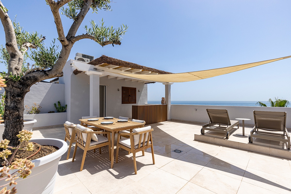 If you’re looking for the best sea views in Estepona, welcome home. True beachfront living, with private direct access to the sea and a nearly 60 m² terrace designed to slow down and enjoy. Breakfasts with views of Africa and Gibraltar, long barbecues, shaded siestas and sunsets with the sound of the waves. Spacious interiors, constant natural light and a comfortable, intimate layout with an electric fireplace. Ideal for families, couples or groups of friends. Just sea, space and calm.