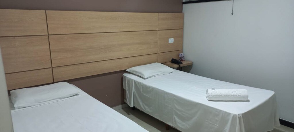 Apartment complete with tv, split air-conditioning, minibar, wi-fi internet, telephone, 01 double box bed and American kitchen. Located in the city center, close to restaurants, pharmacies, market, shops, etc. You can use the hotel's facilities, parking, reception and convenience store 24/7, weight room Close to bus stop, and taxi If you choose to eat breakfast, you are charged R$35.00 per person Sophistication, elegance and quality.