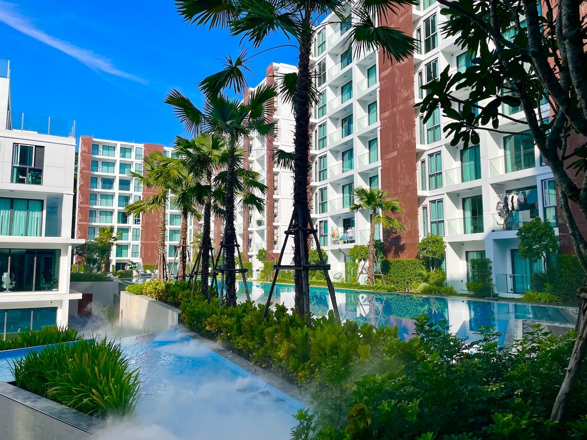New and largest water system apartment in Chiang Mai City, located next to Central festival mall in Chiang Mai (5 minute walk), just 5 minutes by car from Bangkok Hospital.The neighborhood is fully equipped, the gym, the yoga room, the pool table, the shared kitchen, the BBQ barbecue, the study room, the game room, the sauna, the public shower, the large swimming pool, the large slide, not to leave the house, enjoy the bus shuttle every day to the supermarket and the local market, there is a door-to-door service, laundry, cleaning service.Very convenient.The most complete matching, a one-of-a-kind retreat feeling.