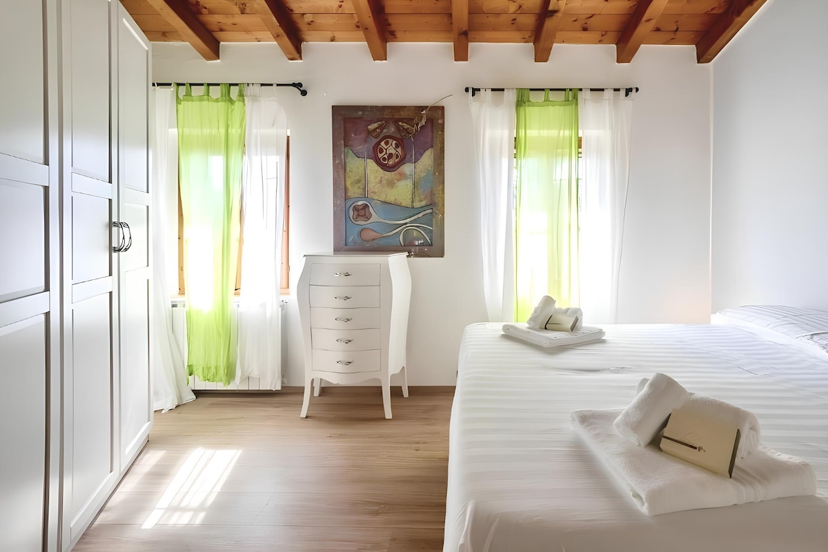 023091-LOC-03296 Corte Marchiori. Welcome to our family home, passed down through six generations—an oasis of peace among vineyards. With 200 sqm, 4 bedrooms with en-suite bathrooms, attic kitchen and living room, parquet floors, exposed beams, and a furnished garden. Ideal for those seeking space and authenticity. Car rental is highly recommended. On request, enjoy a wine tasting at our neighbors’ family-run winery, then unwind in the garden under the stars.