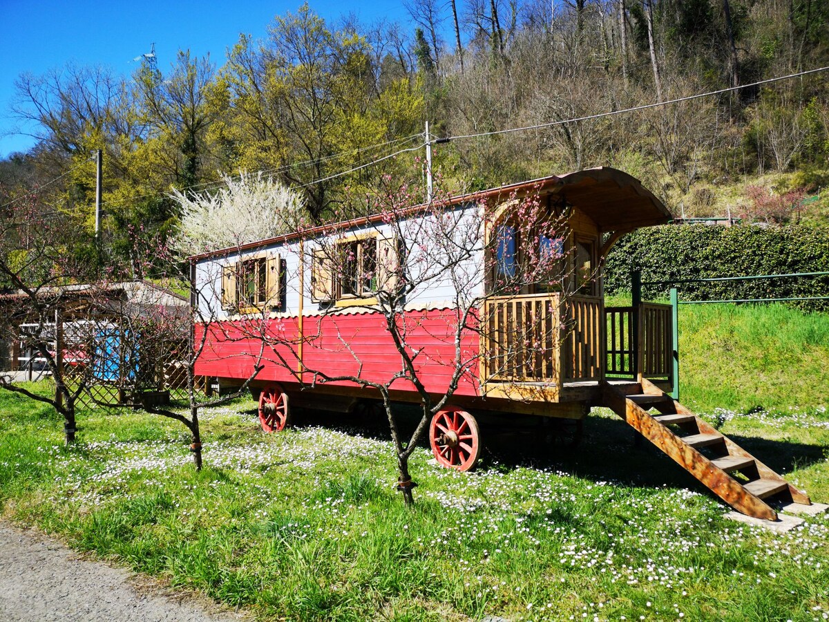 The Gipsy Home (or Carrozzone Gitano) is a small apartment entirely built by hand in wood, equipped with every essential comfort. Immersed in the greenery of our private structure with swimming pool and barbecue, you will stay in a surreal atmosphere where relax will act as sovereign. You will have a kitchen equipped with a stove and fridge, a fantastic large bed and a bathroom with a very spacious shower. There will be a LED TV and air conditioning.
