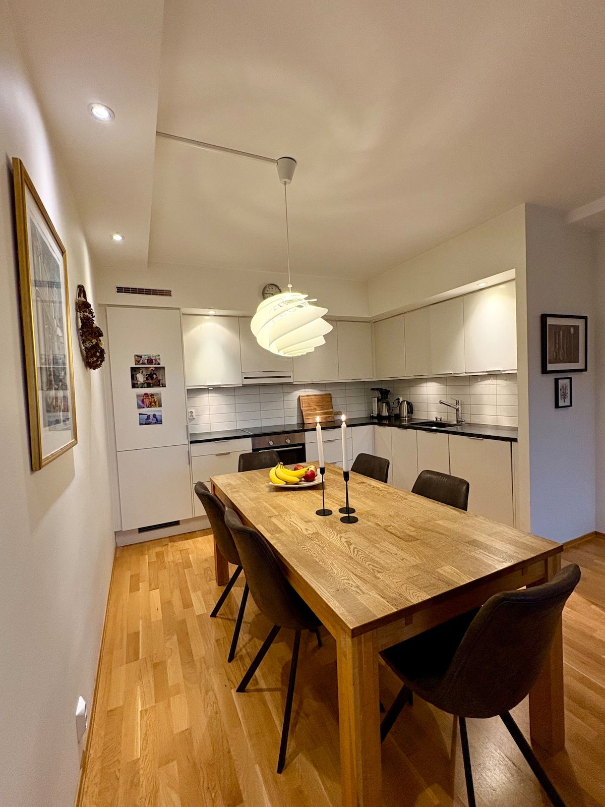 Modern apartment 64m2 with two bedrooms, bathroom, and possibility for up to 6 beds. Spacious terrace with gas grill, short distance to the beach, bathing jetty, shopping at Fornebu S. Suitable for holidays/leisure, cultural experiences, and work. Fornebu offers good hiking opportunities, with Nansenparken and proximity to the lake, Telenor arena, football pitches, swimming pool, tennis courts, curling, etc. The apartment is fully equipped, with an elevator up from parking in a garage with charging option for electric car.