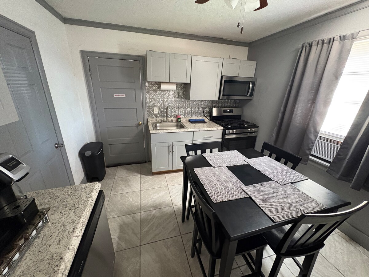 The Calm Landing – Peaceful Stay Near Airport & Park **NO CLEANING FEE** **BRAND NEW AC/HEAT** Relax in this clean and comfortable 1 bedroom unit featuring a full bathroom, cozy living room with a pull out couch, and a convenient kitchenette. Enjoy brand new AC and fresh bedding for a restful stay. Located in a great area in a quiet neighborhood with private parking, just 5 minutes from the airport, shopping centers, and easy access to Interstate-10.